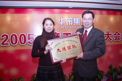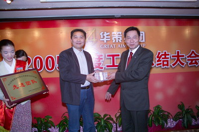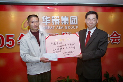 余道群總裁宣布對2005年對集團做出特殊貢獻的謝永生、楊家瓊同志給予重獎。對涌現出來的中山華策置地公司團隊等優秀團隊、王偉國等31名先進個人以及有突出表現的張寶有、李建幫同志給予表彰獎勵。