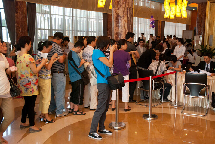 選房從下午2點(diǎn)正式開始,南灣國際門前早已大排“車龍”,極目望去亦難見盡頭。2棟新品更是搶手,其91㎡、125㎡單位再次成為熱門。銷售中心內(nèi)人潮涌動(dòng),每位客戶都一邊忙著聽置業(yè)顧問講解,精挑細(xì)選自己的“心水”單位,一邊注意是否輪到自己的選房號碼。