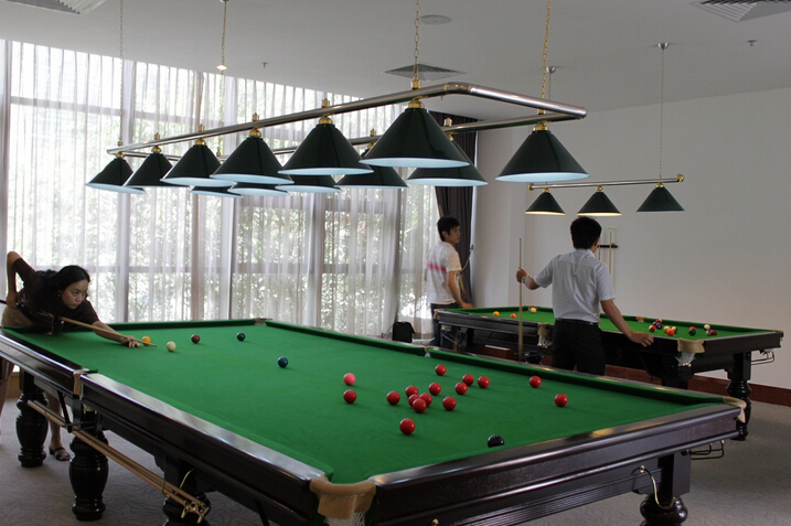 圖為一客戶簽約之余在桌球室揮桿自娛