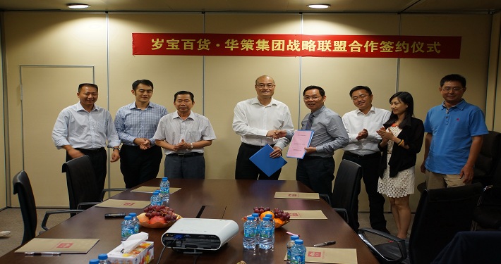2012年9月21日下午,珠海市華策集團有限公司與歲寶百貨控股(中國)有限公司在深圳福田皇崗商務中心十一樓歲寶總部會議室舉行隆重的《戰略聯盟合作協議》簽約儀式,華策集團董事長楊峰與歲寶百貨董事長楊祥波在合作協議上簽字。