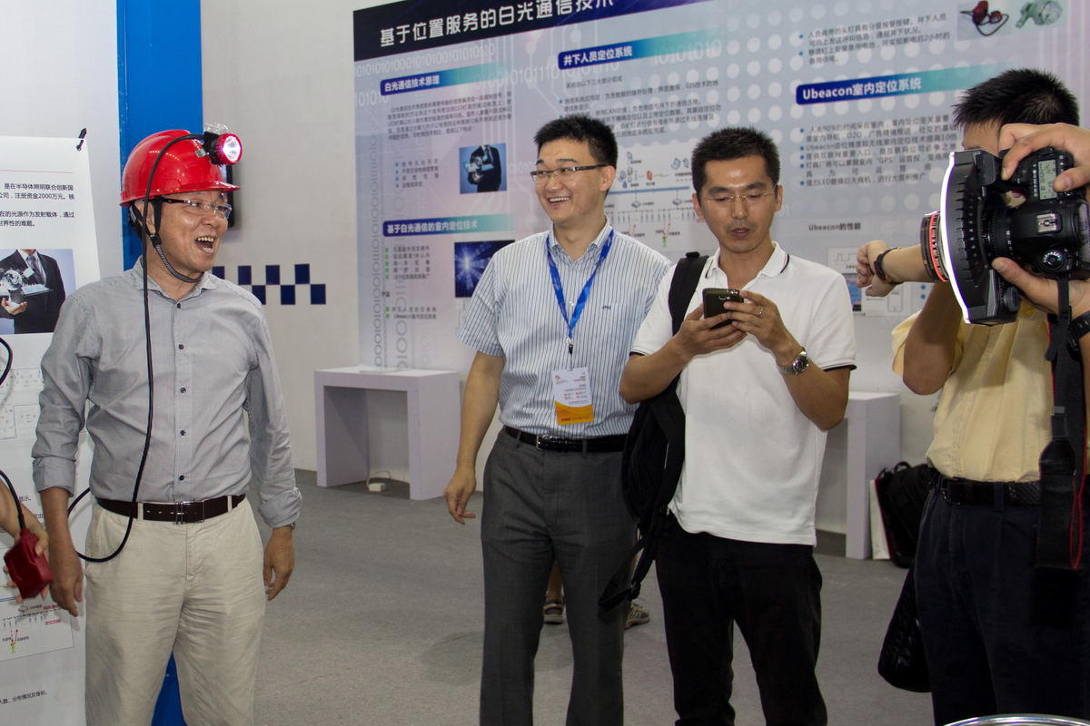 “基于位置服務的白光通信技術”深受各界高度關注。華策光通信科技有限公司展區前人頭攢動:記者、學者、企業家忙于采訪、交流、洽談……