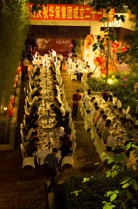 會后,為慶祝華策集團成立二十一周年,集團為所有與會人員準備了自助晚餐。