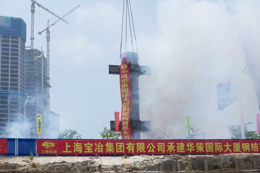 “華策國際大廈鋼結(jié)構(gòu)吊裝啟吊正式開始,首吊大吉!”隨著華策集團(tuán)董事局副主席楊智雄先生一聲令下,2016年5月15日上午11時(shí)18分,珠海橫琴華策國際大廈鋼結(jié)構(gòu)構(gòu)件起吊緩緩升起,第一節(jié)鋼管柱穩(wěn)穩(wěn)坐落在首節(jié)預(yù)埋短柱上方。華策集團(tuán)董事局董事及相關(guān)部門領(lǐng)導(dǎo)、廣東省建筑設(shè)計(jì)研究院領(lǐng)導(dǎo)及設(shè)計(jì)人員、上海寶冶集團(tuán)有限公司領(lǐng)導(dǎo)及施工負(fù)責(zé)人、珠海建設(shè)工程監(jiān)理有限公司負(fù)責(zé)人等共同見證了華策國際大廈鋼結(jié)構(gòu)的起吊儀式。