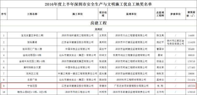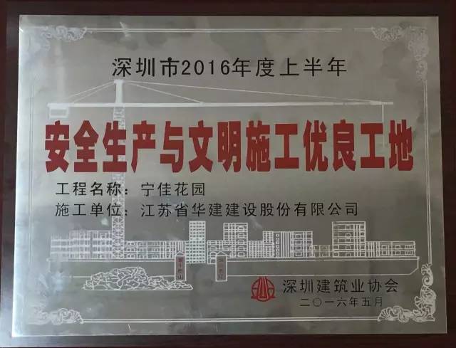 近日,根據《深圳市建設工程安全生產與文明施工優良工地評選辦法》,深圳建筑業協會組織了2016年度上半年深圳市安全生產文明施工優良工地的檢查評比工作。經過對企業申報的118個項目的初審,檢查組現場檢查、復查,深圳建筑業協會安全生產文明施工優良工地工作委員會審定,其中寧佳花園(寧佳花園為項目地塊名稱,華策中心城為項目推廣名稱)作為“安全生產與文明施工優良工地”的示范項目,成為深圳市龍崗濱河獲此殊榮的在建住宅項目之一。