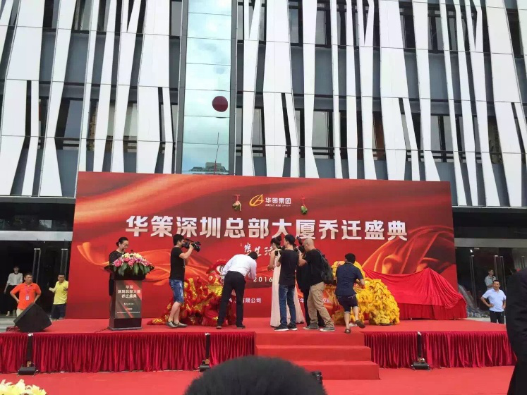 2016年6月27日,深圳市華策投資控股有限公司喜迎喬遷慶典。上午10時整,喬遷慶典儀式在深圳華策投資控股大廈前廣場舉行,這標(biāo)志著華策集團(tuán)自美國總部、中國珠海總部運(yùn)營多年后,又一重要區(qū)域總部——深圳總部正式落成并投入使用。