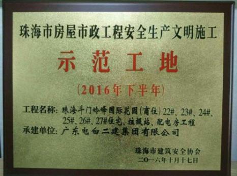 帝景灣項(xiàng)目工程、嶺峰國(guó)際三期工程榮獲“珠海市房屋市政工程安全生產(chǎn)文明施工示范工地”稱號(hào)發(fā)布時(shí)間: