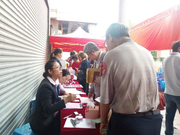上午9點(diǎn),簽到區(qū)已排長(zhǎng)隊(duì),在工作人員的指引下,陸續(xù)到來(lái)的業(yè)主有序地進(jìn)行簽到。簽到人員認(rèn)真審核業(yè)主資料,并派發(fā)臂貼號(hào)。