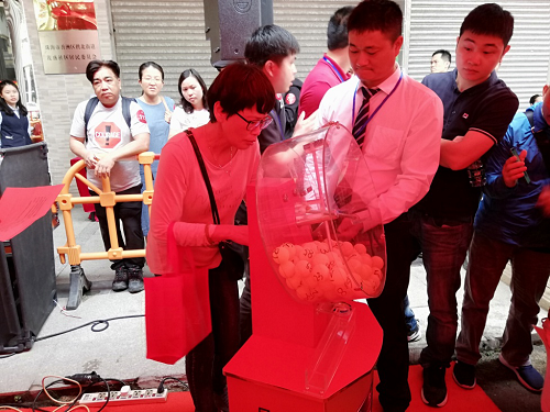 此次車位開(kāi)盤(pán)僅對(duì)已認(rèn)籌業(yè)主開(kāi)放,搖號(hào)采用全透明搖號(hào)機(jī)。主持人邀請(qǐng)業(yè)主上臺(tái)將乒乓球號(hào)碼投入搖號(hào)機(jī)內(nèi),以保證搖號(hào)程序做到真正的公開(kāi)、公平、公正。