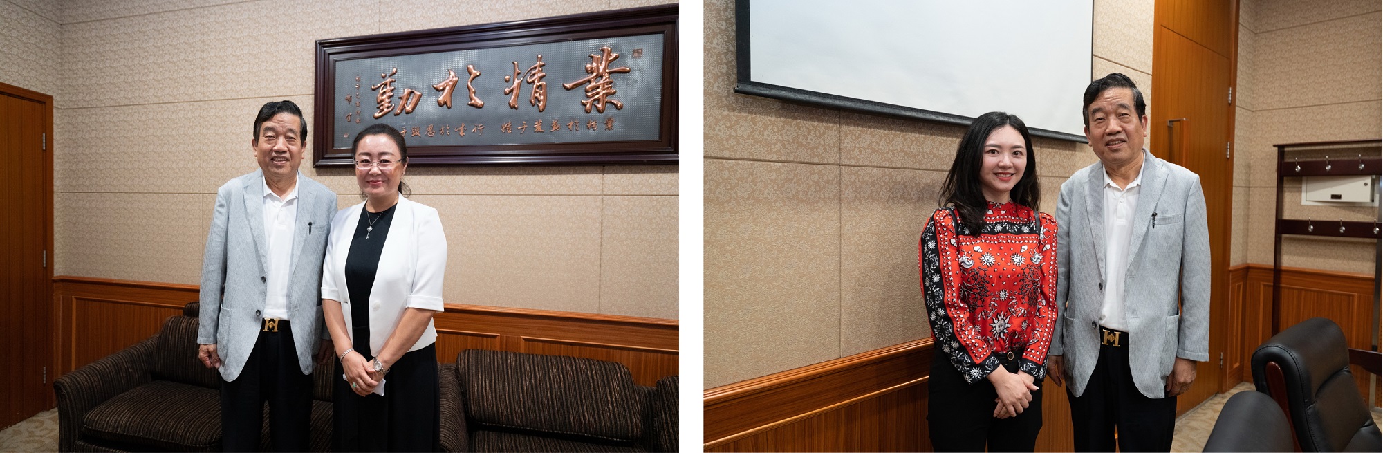 中國書法家協會主席蘇士澍與華策集團副總裁趙日云(左圖)、華策集團行政副總監田婷婷(右圖)合影留念