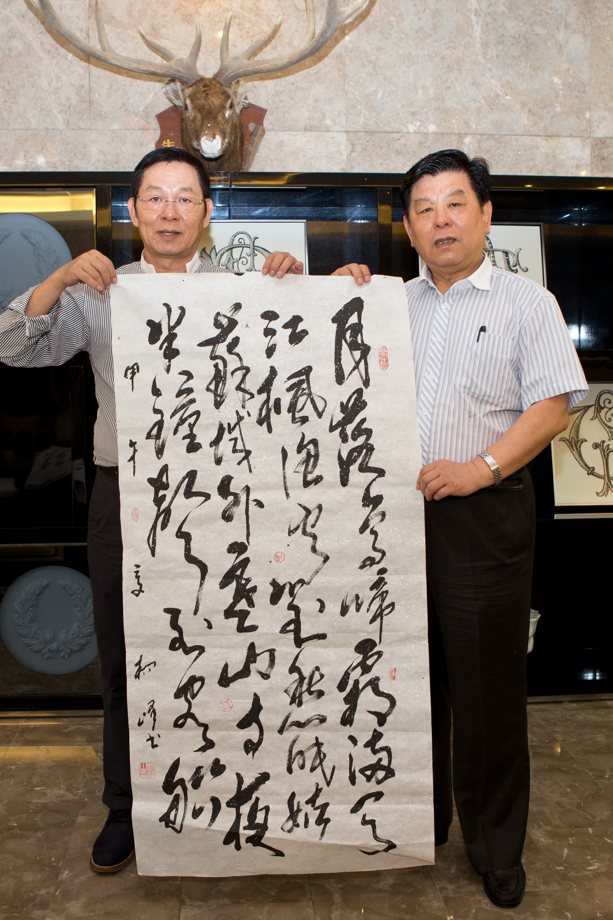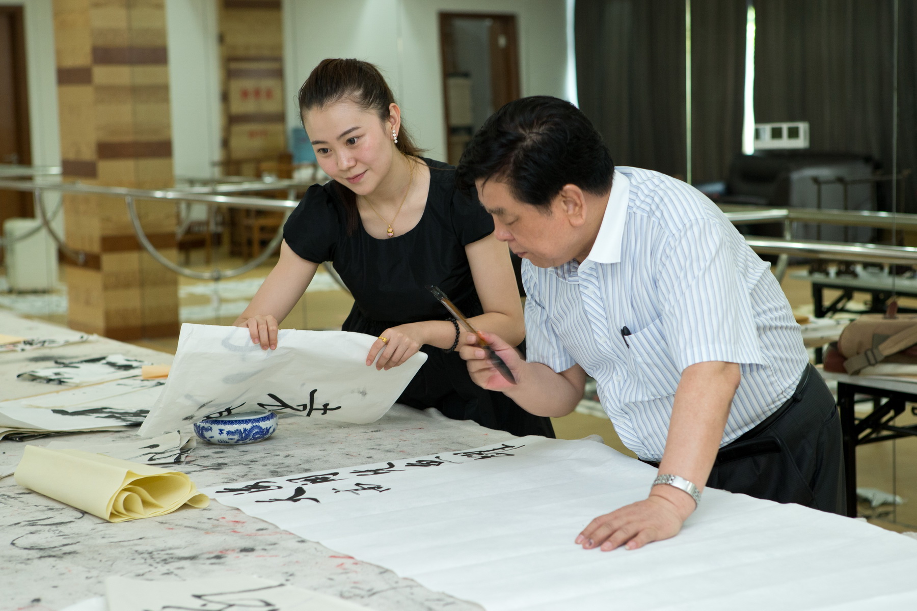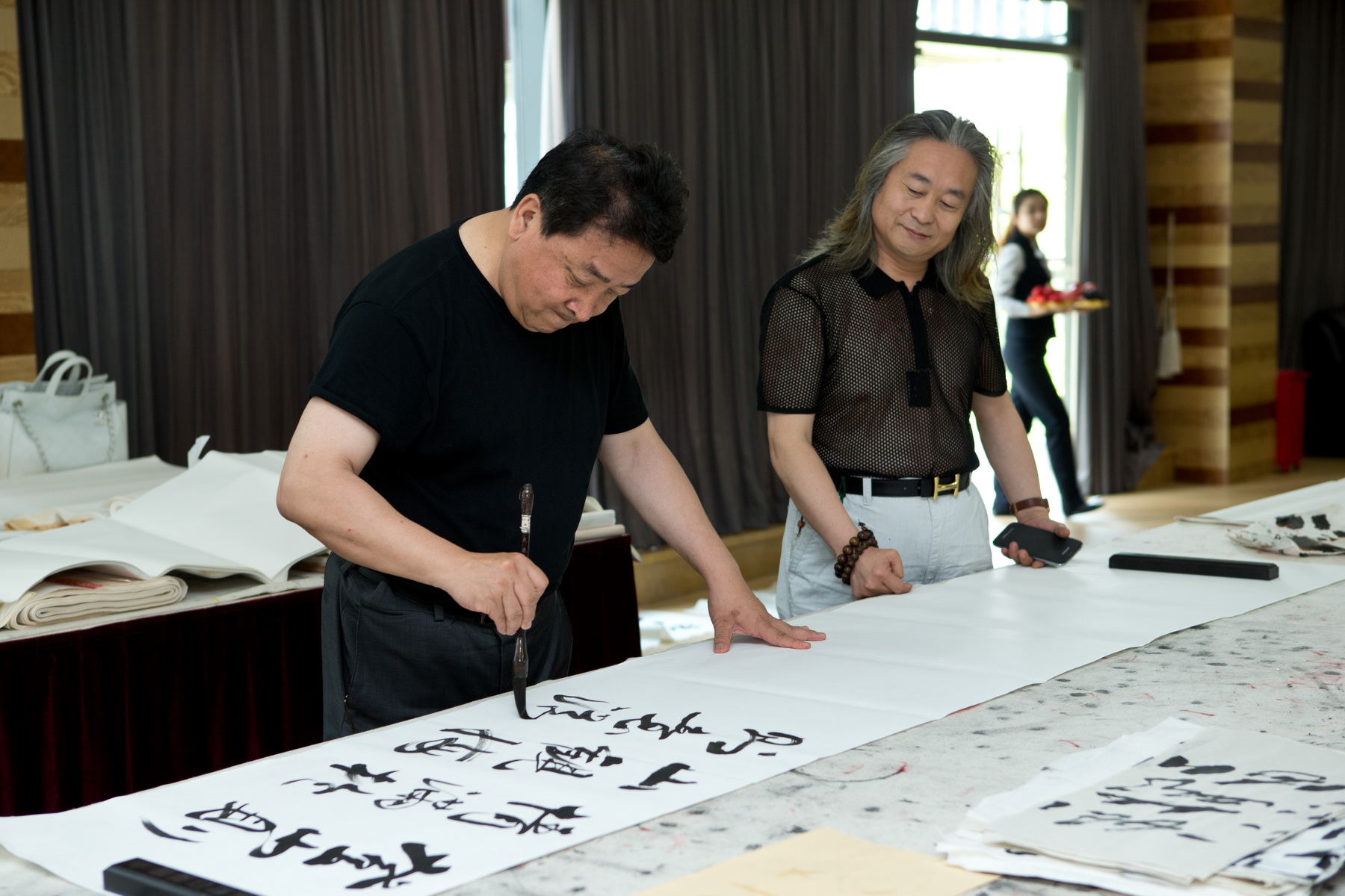儀式結束后,在胡老部長的提議下,藝術家們即興抒懷,到楊峰主席的書畫室創作揮毫。